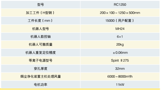 特点:RC1250型机器人等离子切割机用于 H型钢、槽钢等型材的切割加工。